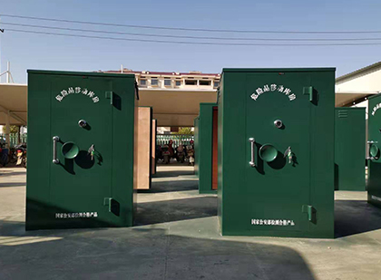 箱。移动炸药库-般是指用来临时存放炸药、 定城镇雷管柜的库房,随着流动爆破作业的增加,原有的固定式土建炸药库房已经不能适应实际需求,所以移